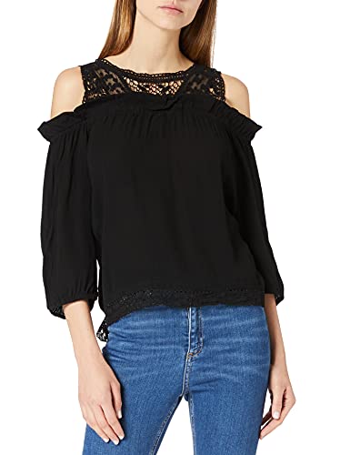 Eight2Nine Damen Bluse Carmen-Ausschnitt mit Spitze Camicia da Donna, Nero