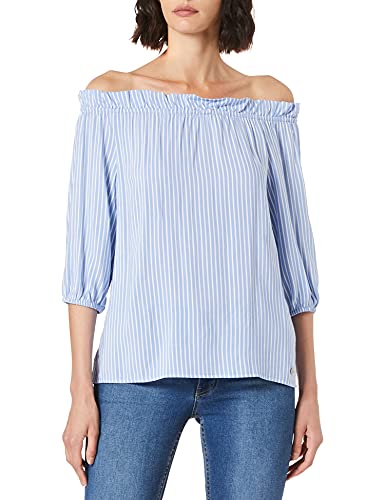 Eight2Nine Damen Carmen-Bluse Langarm Camicia da Donna, Strisce Bianche Cielo, M