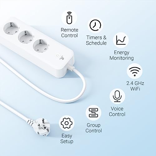 Eightree Multipresa Intelligente con 3 Prese AC, Wi-Fi Smart, con Monitoraggio del Consumo e Controllo Remoto, Compatibile con Alexa, Google Home, SmartThings, Controllo Vocale, 16A, 1,5M
