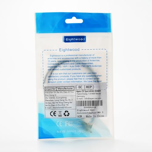 Eightwood DAB DAB+ Antenna Car Radio aerial Adattatore SMA a SMB Cavo RG174 50cm 1.6ft per Blaupunkt Beat TechniSat Pioneer Sony Kenwood Alpine DAB antenna