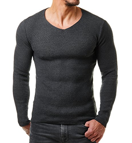 EightyFive Uomo Maglione Pullover A Maglia Fine Nero Bianco Antracite Grigio Beige ef1402 Anthrazit m