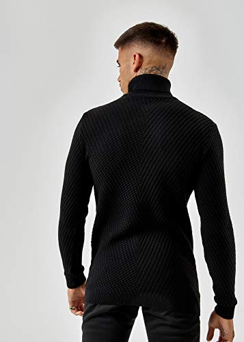 Eightyfive, Pullover da uomo in maglia sottile, con strisce bianco, grigio e nero EF1699 nero s