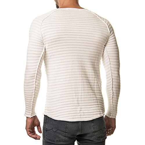 Eightyfive, Pullover da uomo in maglia sottile, con strisce bianco, grigio e nero EF1699 bianco crema L