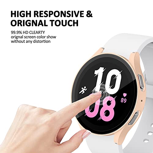 EIHAIHIS 4 Pezzi Custodia Protettiva Rigida per PC per Samsung Galaxy Watch 5 40mm, Caso con Pellicola Protettiva per Schermo in Vetro Temperato per Donna Uomo, Trasparente/Rosa/Nero/Oro Rosa