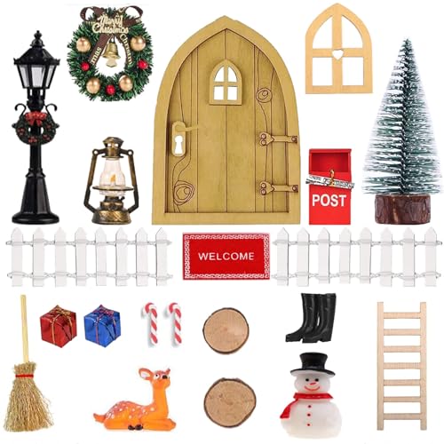 EIKEJI Porta Elfo Natale Kit, 23 Pezzi Porta Elfo Natale Accessori per Porta Gnomo Natale, Elfo Natale in Miniatura, Porta Elfo Natalizio Legno per Casa delle Bambole in Miniatura