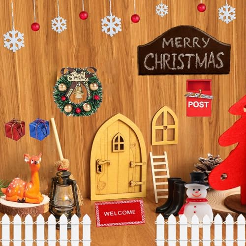【Crea il Tuo Set Completo per Porticina Elfo】Aggiungi un po' di magia da favola alla tua porta elfo con questo bellissimo e affascinante accessorio per porta elfo di Natale. Design originale della porta folletto in legno in miniatura, mini accessori come mini ghirlande, mini lampade a olio, mini stivali, ecc., Squisiti e realistici. Che può aggiungere un'atmosfera natalizia felice.