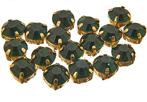 Eimass - Cristalli in strass di vetro tagliato incastonati in argento e oro, da cucire / incollare, di alta qualità (Confezione da 100), (Gold Casing Emerald Green), 5 mm