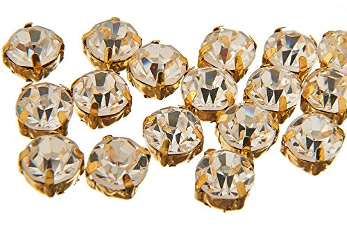 Eimass - Cristalli in strass di vetro tagliato incastonati in argento e oro, da cucire / incollare, di alta qualità (Confezione da 100), (Cristal transparent dans encastrement doré), 7mm (ss35)