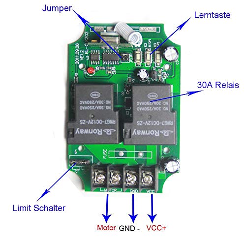 Einaus Telecomando universale da 12 V DC, ad alta potenza, 30 A, azionamenti lineari, motore lineare, in avanti, retromarcia, controllo remoto, pompa, verricello, per porte e tapparelle