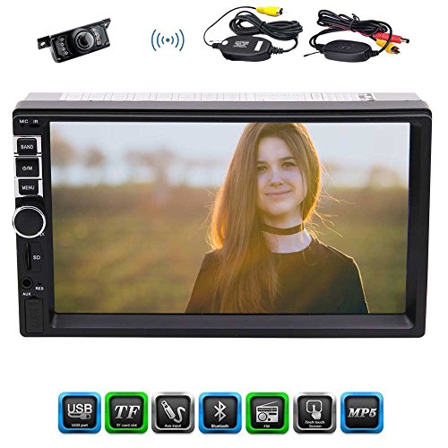 EINCAR 7 inch 2 DIN Bluetooth Car MP5 Car Stereo Head Unit Car Player with 1080P Touch Screen Support Bluetooth FM TF AV-in/Music/USB/Photo/Movie/TF/Wireless Remote