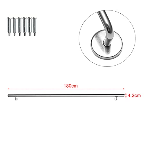 EINFEBEN - Corrimano in acciaio inox, ringhiera da parete, per interni ed esterni, con appoggiamano a parete e cappucci di chiusura per estremità, 180 cm