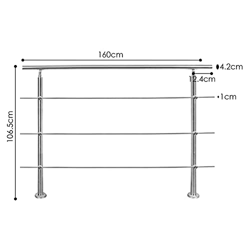 EINFEBEN Corrimano in alluminio con/senza barre trasversali, per parapetto, balcone, giardino (160 cm, 3 barre trasversali)