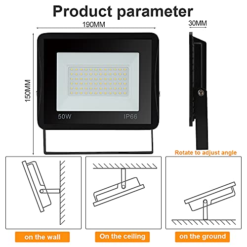 EINFEBEN Faretto LED 50W da Esterno 2, Faretti da Esterni 4250LM Illuminazione da esterna 3000K Bianco Luce Diurna, Proiettore Impermeabile IP66, lampada da ideale per giardino, cortile, casa, hotel
