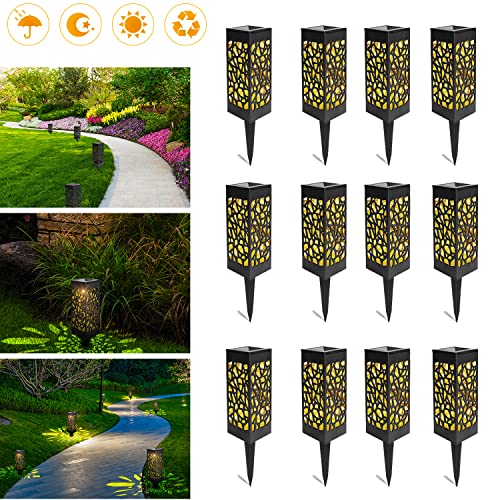 EINFEBEN Lampade solari da giardino, per vialetti, lampade solari per esterni, IP55, impermeabile, lampada da giardino, decorazione da giardino, terrazza, prato, con picchetto in plastica (12 pezzi)