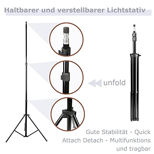 Altezza e larghezza regolabili: altezza (84 cm - 210 cm) e larghezza (152 cm - 300 cm) possono essere regolate per soddisfare le vostre esigenze per diverse altezze durante il vostro lavoro fotografico.