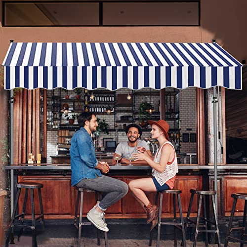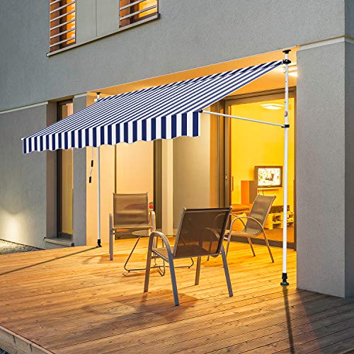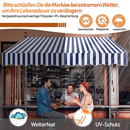 Einfeben Tenda da sole da balcone con manovella, resistente ai raggi UV, regolabile in altezza, retrattile, senza foratura, poliestere, 300 x 120 cm, blu e bianco