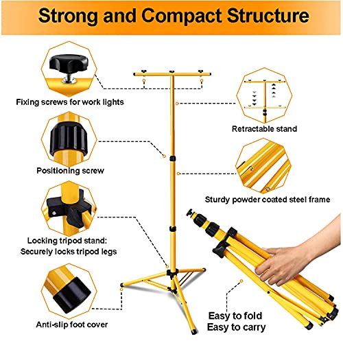 EINFEBEN Treppiede per faretto da costruzione, proiettore da cantiere, telescopico, colore giallo, altezza regolabile, luce di inondazione treppiede, staffa per 1 faretti