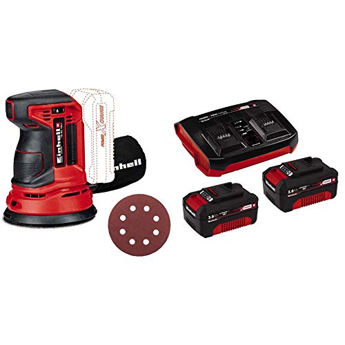 Einhell 4462010 Levigatrice Rotorbitale Te-Rs 18 Li, Power X-Change, Ioni di Litio, Diametro Platorello 125 mm, Senza Batteria e Caricabatterie, 18 V + 2X 3,0Ah & Twincharger PXC Starter Kit