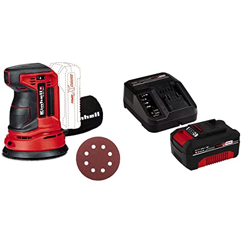 Einhell 4462010 Levigatrice Rotorbitale Te-Rs 18 Li, Power X-Change, Ioni di Litio + Power-X-Change Starter Kit, Caricabatteria e Batteria da 4000 mAh Li-Ion, Nero, Rosso