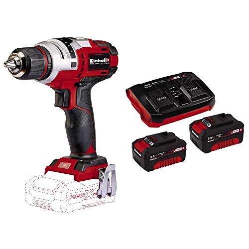 Einhell 4513870 Trapano Avvitatore Te-CD 18 Li-E Solo Power X-Change, Ioni di Litio, 47 NM, Mandrino da 13 mm, Senza Batteria e Caricabatterie, 18 V + 2X 3,0Ah & Twincharger PXC Starter Kit