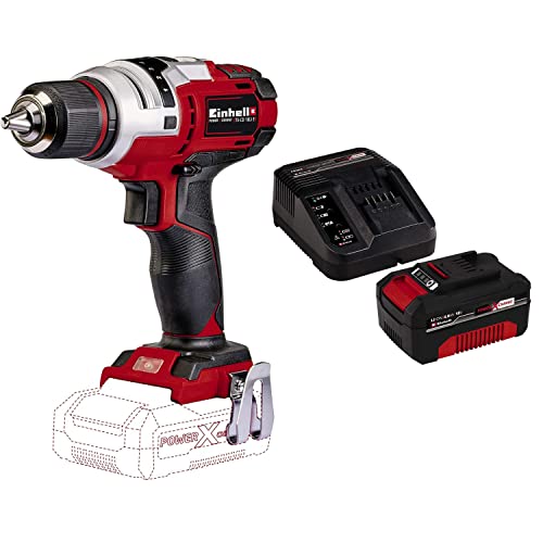 Einhell 4513870 Trapano Avvitatore Te-CD 18 Li-E Solo Power X-Change, Ioni di Litio, 47 NM, Mandrino da 13 mm + Power-X-Change Starter Kit, Caricabatteria e Batteria da 4000 mAh Li-Ion, Nero, Rosso
