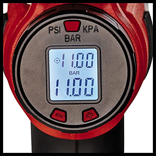Manometro digitale - La pressione d'esercizio può essere impostata da 0 a max. 11 bar tramite il display digitale, il quale mostra la pressione effettiva degli pneumatici per auto o per bicicletta