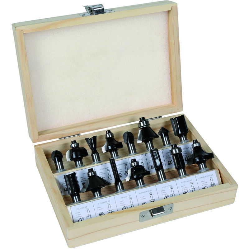 Einhell set frese per fresatrice verticale 15 pezzi In cofanetto di legno, gambo mm. 8, ideale per la lavorazione del legno. Articolo produttore: 49757291