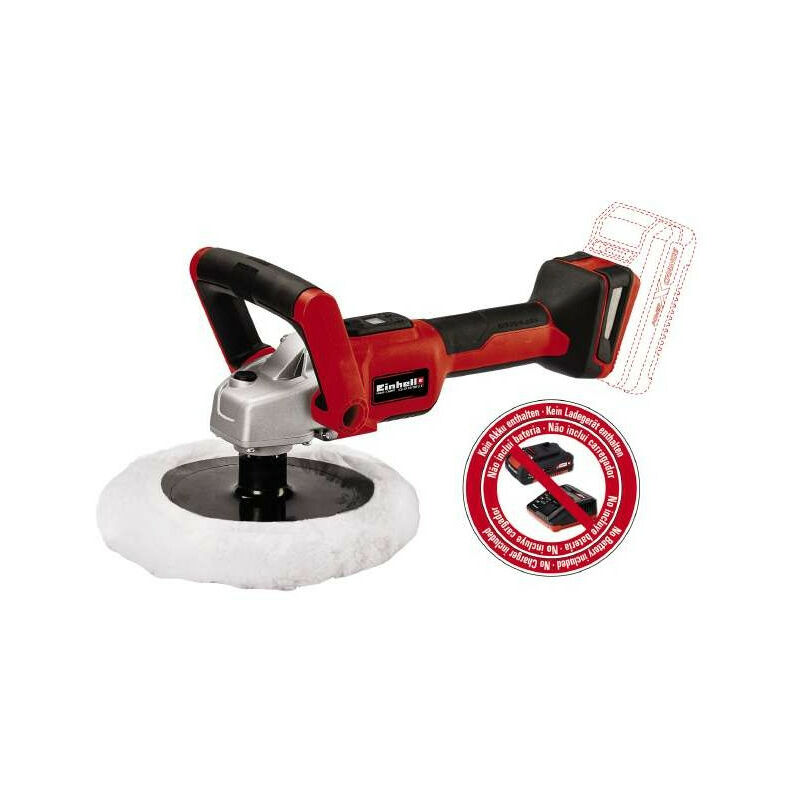 Componente della famiglia Power X-Change necessaria 1 batteria da 18 V Motore Brushless Einhell con motore elettrico senza spazzole. Prodotto 2 in 1: Lucidare e levigare con un unico apparecchio Regolazione elettronica del numero di giri mediante display LCD Impugnatura ergonomica che garantisce presa e controllo dello spostamento ottimali Struttura snella con impugnatura ergonomica antiscivolo Micro-hook and loop per sostituzione veloce degli accessori Blocco del mandrino per il fissaggio ottimale del platorello di levigatura Platorello di levigatura grande di 180 mm di diametro che permette di procedere più velocemente Consiglio per risultati ottimali: Batteria da 2 5 Ah o super Fornitura senza batteria e senza caricabatteria (acquistabili separatamente) Specifiche tecniche Velocità di rotazione 500 min^-1 - 3000 min^-1 Diametro disco lucidante 180 mm