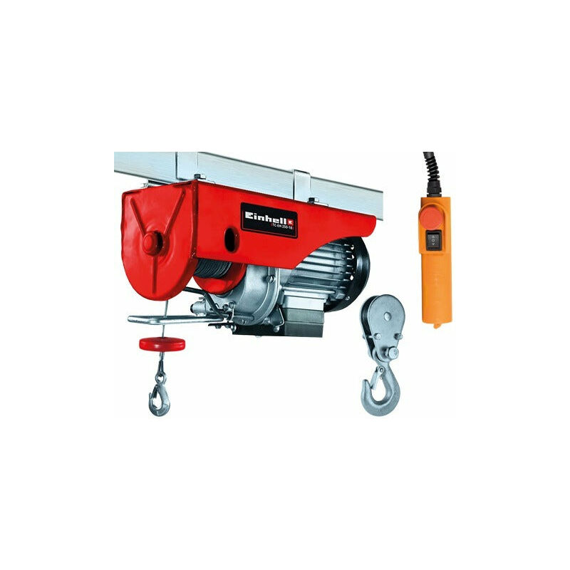 CARATTERISTICHE L'argano TC-EH 250-18 consente il sollevamento sicuro di carichi pesanti in casa, in giardino e in officina, semplicemente premendo un interruttore. Le sue numerose caratteristiche rappresentano vere e proprie tecnologie all'avanguardia. È dotato di un cavo metallico di oltre 18 metri con una sezione di 3,2 mm. Grazie al rullo di guida con gancio di sollevamento, è in grado di sollevare carichi fino a 250 kg ad un'altezza di 9 m. Senza il rullo di guida il carico massimo è dimezzato, ma l'altezza di sollevamento aumenta fino a 18 m. L'argano TC-EH 250-18 è dotato di numerosi dispositivi di sicurezza. La funzione di arresto di emergenza dell'interruttore di comando isolato garantisce lo spegnimento immediato, semplicemente premendo un tasto. L'interruttore termostatico protegge il robusto motore dal surriscaldamento. Il cavo metallico a prova di torsione impedisce al carico di ruotare durante il sollevamento. Il dispositivo di sicurezza sul gancio di sollevamento
