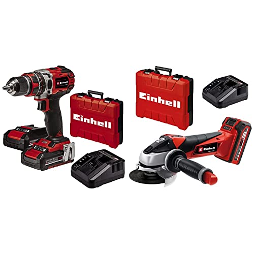 Einhell Te-Cd 18/50 Li-I Bl Trapano Avvitatore A Percussione A Batteria Powe X-Change 18 V, Nero Rosso & Smerigliatrice Angolare A Batteria Te-Ag 18/115 Li-Solo Power X-Change 18 V, Nero Rosso