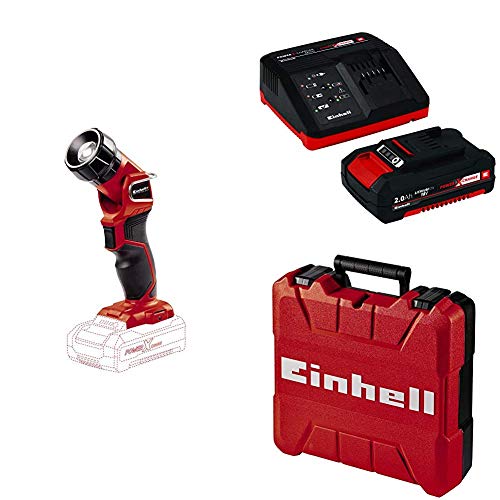 Einhell TE-CL 18 Li H-Solo Lampada a Batteria, Rosso + Power-X-Change Starter Kit(Batteria e Caricabatteria) + Valigetta Universale