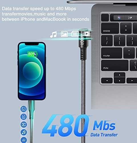 【Design unico ad angolo retto】 Questo cavo di ricarica intrecciato in nylon a forma di C ad angolo retto presenta un innovativo design a "L" a 90 gradi per una ricarica rapida. La lunghezza di 2m consente di utilizzarlo in modo flessibile durante la ricarica, come i giochi, guardare video e leggere e-book, che è più comodo e comodo.