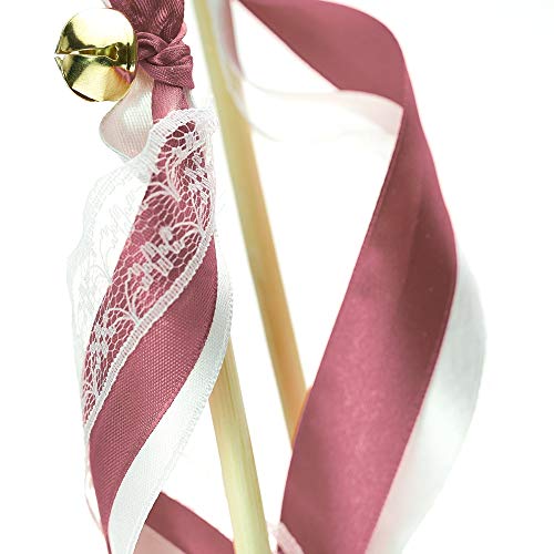 EinsSein 20x Bacchette da Sposa Romantico Rosa Bacchetta magiche Magica Decorazioni Matrimonio Legno Nastro Seta Stella Principesse Nozze Fatina Rosa di Pizzo Nastri in Pioggia Wedding Wand Wands