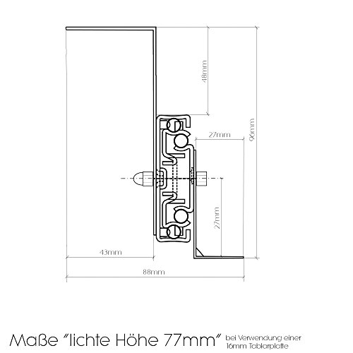 Altezza dei ripiani: 47, 57, 77 mm (dimensioni tra il bordo inferiore del tavolo e il bordo superiore del ripiano con una piastra da 16 mm di spessore). Profondità del ripiano: 400 mm (a seconda della profondità della piastra, si consiglia 400 mm).