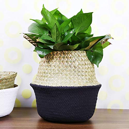 EisEyen Cestino da picnic per pesce, cestino per giocattoli, camino, cestino in alghe marine, per cameretta, bagno, grande e piccolo, Nero, Medium