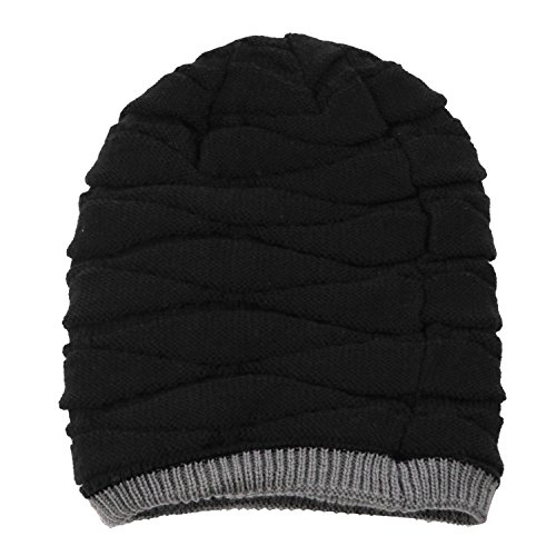 Eizur Uomo Morbido Foderato Maglia Cappello Beanie Inverno Thick Caldo Slouchy Berretto-Nero