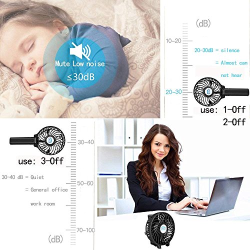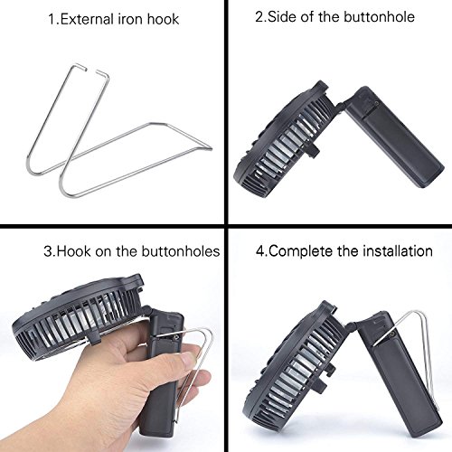 EJBOTH Mini USB Ventilatore Portatile, Batteria Ricaricabile Pieghevole Ventilatori USB con l'ombrello Hanging e Metal clip per il Computer Portatile Scrivania Tavolo Camera da Esterni Etc [Nero]