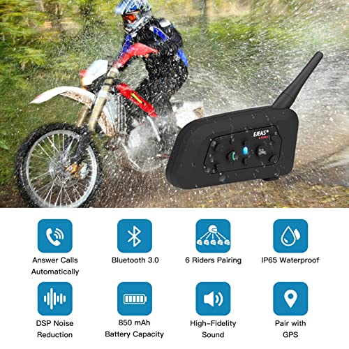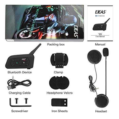 EJEAS V6 Pro Interfono Moto Bluetooth 1200M 2 Persone Interphone per Moto Wireless Full Duplex Connetti Fino a 6 Motociclisti per Motociclismo Sci e Arrampicata (1 Confezione)
