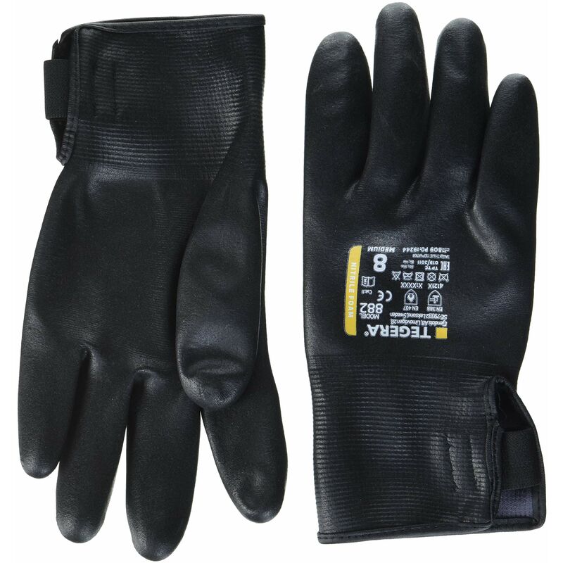 Guanti sintetici in schiuma di nitrile, completamente rivestiti, in nylon,palmo rivestito in microschiuma, cat. II, nero, resistente al calore di contatto fino a 100 °C, resistente a olio e acqua, per meccanica di precisione.