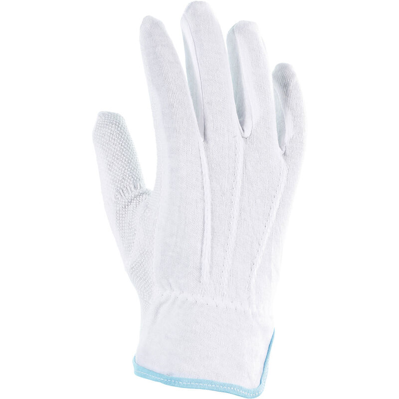 Guanti per operazioni a basso rischio e lavori di montaggio, per evitare abrasioni, vesciche e sporco. Tegera® 8127. Guanti in tessuto di cotone con polsini e puntinatura sulle dita in PVC (senza ftalati). Buona sensibilità e comoda indosabbilità grazie alla lavorazione di alta qualità. Uso: Ambienti asciutti e puliti;