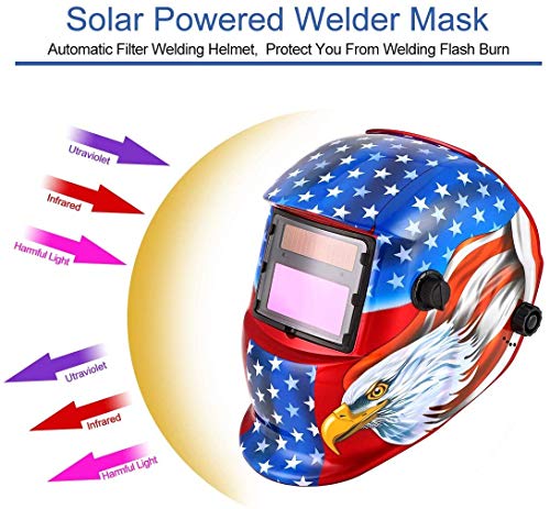 Ejoyous Casco di Saldatura, Maschera per Saldatura Protezione Automatica Della Saldatura con Ampio Intervallo di Regolazione 4/9-13 per TIG MIG MMA MMA Saldatura, Rosso Blu