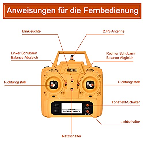 【Gioco multifunzionale】 Simulazione di alta qualità di un vero escavatore per stimolare l'immaginazione del bambino e familiarizzare con il vero escavatore, braccia e pale potenti e flessibili possono essere spostate per caricare o scaricare terra, sabbia o altri oggetti, 2. TRASMETTITORE 4GHz per il massimo prestazioni con una portata di oltre 30 metri