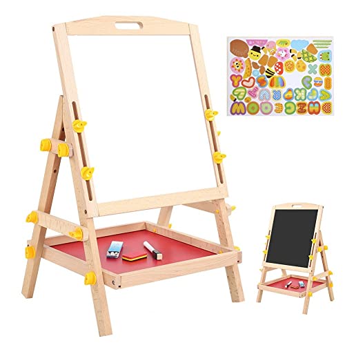 Ejoyous Lavagna per Bambini, Tavolo in Piedi su Due Lati Regolabile in Altezza, Cavalletto da Disegno con Vano Portaoggetti, Gomma e Scatola di Gesso 28 * 34*58 cm, per Ragazzino Bambina Bambino