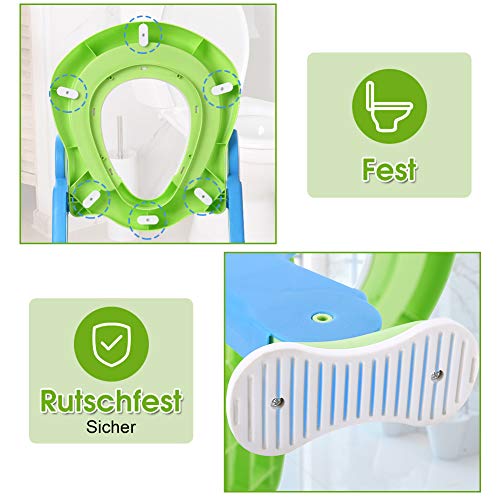 Ejoyous Potty Training Seat, Sedile WC Pieghevole e Regolabile per Bambini con Gradino Largo, Sedia Potty Comoda per Bambini e Ragazzi - Blu e Verde