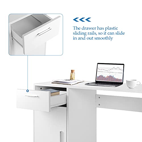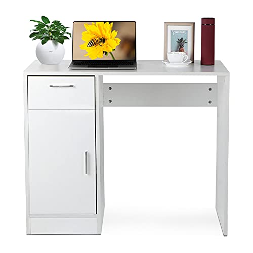 Ejoyous Scrivania Moderna, Tavolo per Computer Tavolo da Segretario Tavolo da Ufficio Tavolo per PC con 1 Cassetto e 1 Porta Adatto per Banco da Lavoro da Ufficio 40 X 75 X 90 cm (bianco)