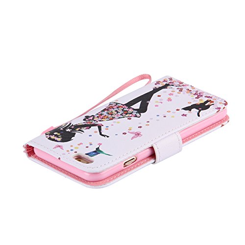 Ekakashop Custodia PU Cuoio Caso con Carte di Credito Slot Protettiva in Pelle Flip Folio Leather Book Wallet cordicella di Stand Case Cover Compatibile con iPhone 6/6S,Donna e Gatto