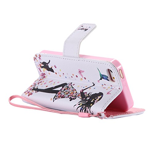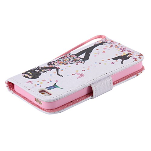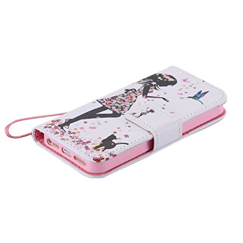 Ekakashop Custodia PU Cuoio Caso con Carte di Credito Slot Protettiva in Pelle Flip Folio Leather cordicella di Stand Case Cover Compatibile con iPhone 5/5S - Donna e Gatto