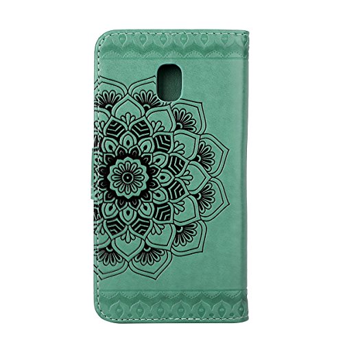 Ekakashop Custodia Galaxy J7 2017 (versione europea), Puro Colore Fiore Modello Sollievo Design Portafoglio Tasca Book Folding Case Cover in PU pelle Borsa Con Cinturino Portatile Antiurto Shock-Absorption Cover Ultra Slim Internamente TPU Silicon Gel Protezione Chiusura Ventosa per Samsung Galaxy J730/J7 2017 (versione europea) Con Ekakashop Kickstand (Colore casuale) -- Verde