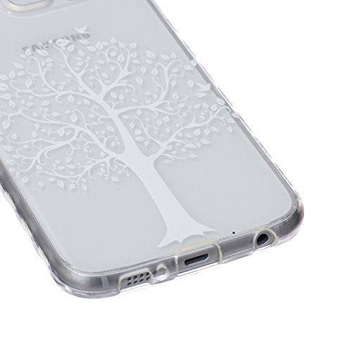 Ekakashop Samsung Galaxy S6 SM-G920F Custodia, ultra sottile-Fit molle flessibile di caso Cover posteriore per Samsung Galaxy S6 SM-G920F, Crystal Clear Soft Cover gel TPU stampato protezione paraurti estremamente sottile copertura di gomma trasparente terremoto bene Samsung Galaxy S6 SM-G920F- alberi bianchi + 1X Kickstand