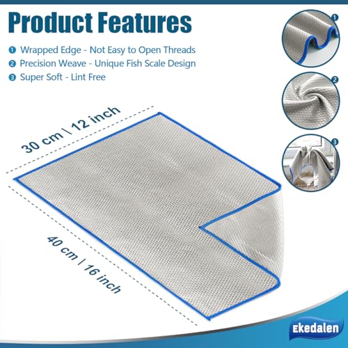 Ekedalen 8X Panno Magico Pulizia Microfibra 40x30CM, Canovaccio Multiuso per Finestra Specchio Vetro, Asciugamani per Cucina Auto Moto Bagno Ufficio Casa, Straccio Squame Pesce, Strofinacci Grigio
